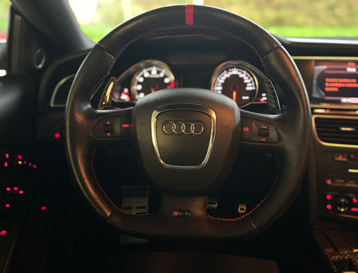 Nabízime Audi RS5 Coupé (B8) z roku 2010 s atmosférickým osmiválcem 4.2 FSI – ikonický motor s výkonem 331 kW (450 k), který nabízí nezaměnitelný zvuk a skvělé jízdní vlastnosti. Aktuální nájezd činí 180 700 km, vůz je ve velmi dobrém technickém i vizuálním stavu a pravidelně servisovaný (přetesnení víka ventilů, výměna ramen, cívek, svíček a oleje v převodovke), po repasi převodovky za 170 tis. Kč v AutoBeky. Výbava zahrnuje pohon všech kol quattro, automatickou převodovku S tronic, adaptivní sportovní podvozek, 20 palcová litá kola MB Design, sportovní sedadla v kůži/Alcantara, třízónovou klimatizaci, prémiové audio Bang & Olufsen, bi-xenonové světlomety, tempomat a další. Vůz má snížení H&R pružiny, Capristo výfukový systém s klapkou a doinstalovaný bluetooth reciever. Ideální volba pro nadšence, kteří hledají čistokrevné sportovní kupé s jedním z posledních atmosférických V8 motorů, precizním řízením a nekompromisním výkonem. Protokol Cebia a z měření laku můžu zaslat emailem.